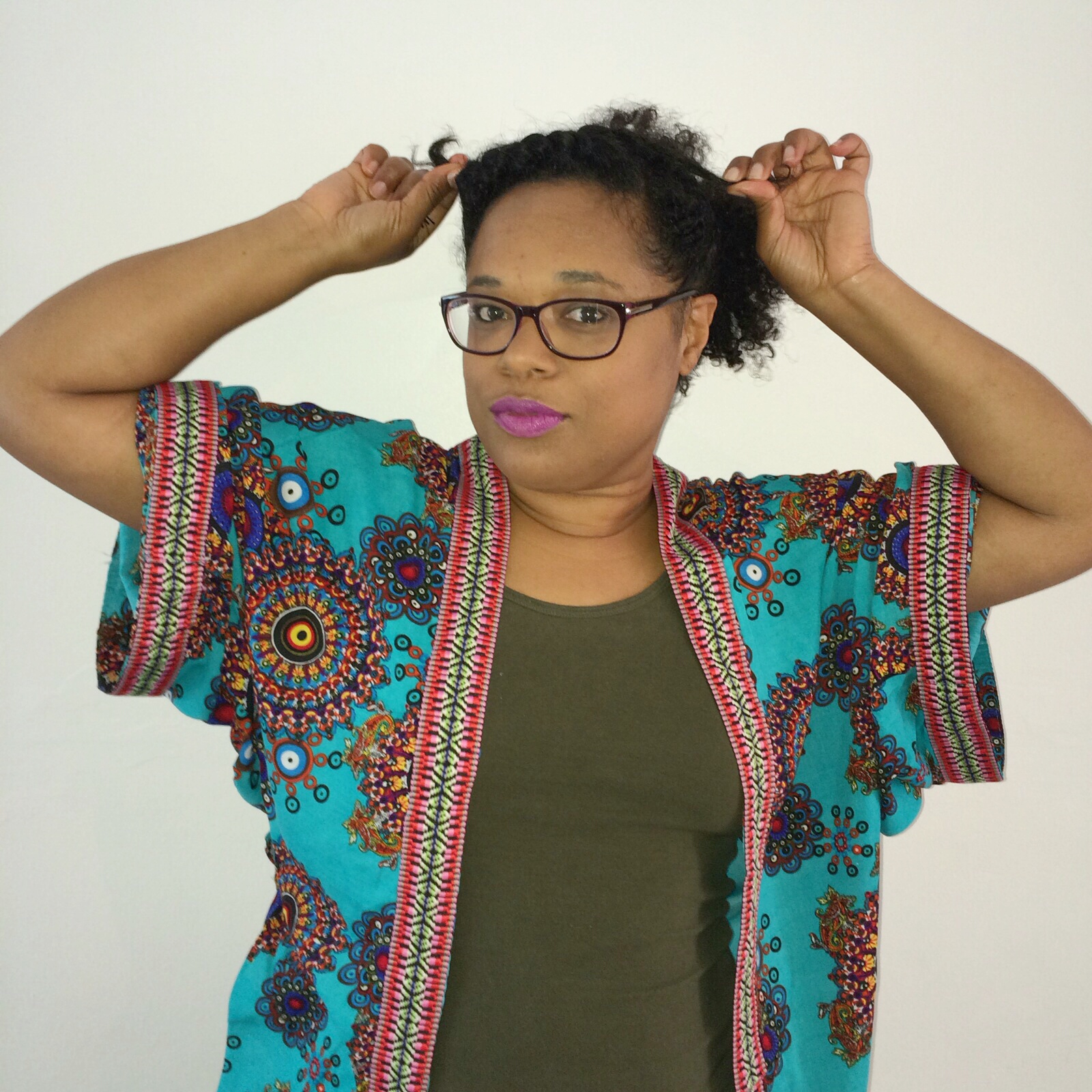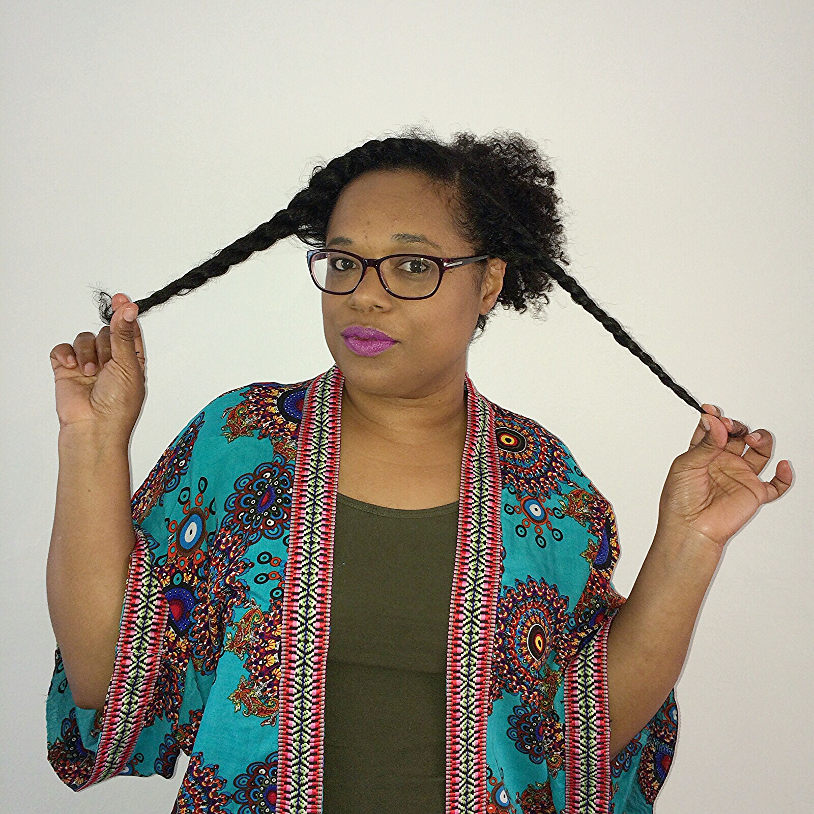 Then I was asked to do a style challenge. Since this week is kinda crazy, I thought I would just show you how I get my hair stretched by using (wait for it) the bun method. I figured that would be defying the purpose of the challenge, so I became inspired to do a style which is a new take on an old personal favourite. I call it The Twisted Goddess Up/Down Do